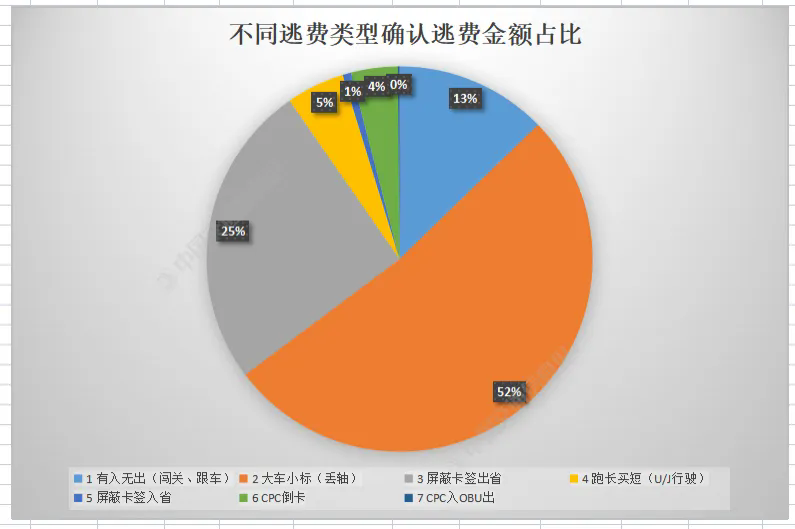 分析可得,有入無出(闖關(guān)、跟車)、大車小標(丟軸)、屏蔽卡簽出省和跑長買短(U/J行駛)等4種逃費類型分別占據(jù)涉及行程數(shù)的96.87%、疑似損失金額的95.9%,是稽核系統(tǒng)需加大核查力度的逃費類型,特別是屏蔽卡簽逃費車次占為11%,逃費金額占比卻達25%,以全網(wǎng)聯(lián)網(wǎng)收費運行模式下出現(xiàn)的新型逃費類型,需要從技術(shù)、管理等多方面加強管理。有入無出(闖關(guān)、跟車)和跑長買短(U/J行駛)2類逃費類型確認逃費金額占比有所下降,直接原因是稽核模型準確率不高。下一步應(yīng)持續(xù)優(yōu)化迭代這2類模型,盡可能提高其準確率,從而不斷提高可追繳比例。